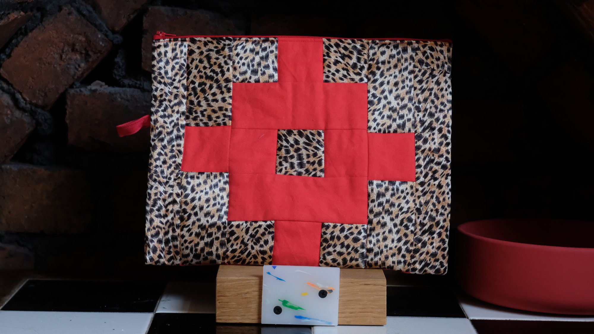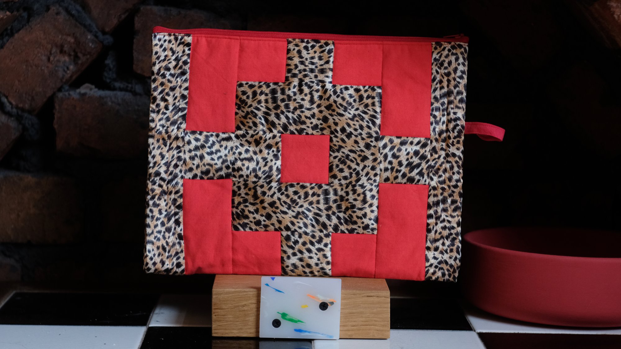 One of a kind quilted pouch, lined with vintage blue fabric & nylon zipper. Inspired by my mam, Kat Slater & the Welsh carthen blanket pattern