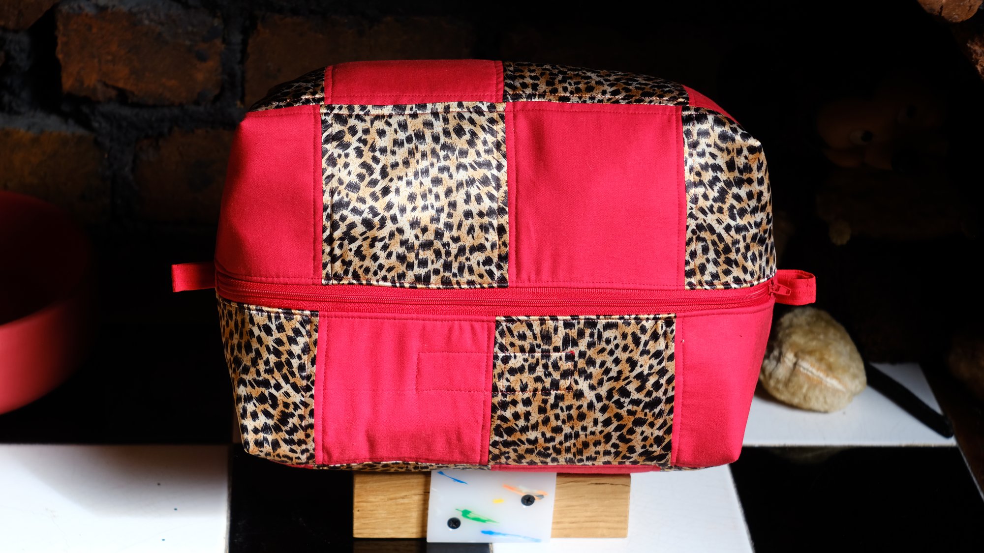 One of a kind large quilted travel bag with two pull tabs & nylon zipper, lined with thick vintage blue upholstery fabric. Inspired by my mam & Kat Slater
