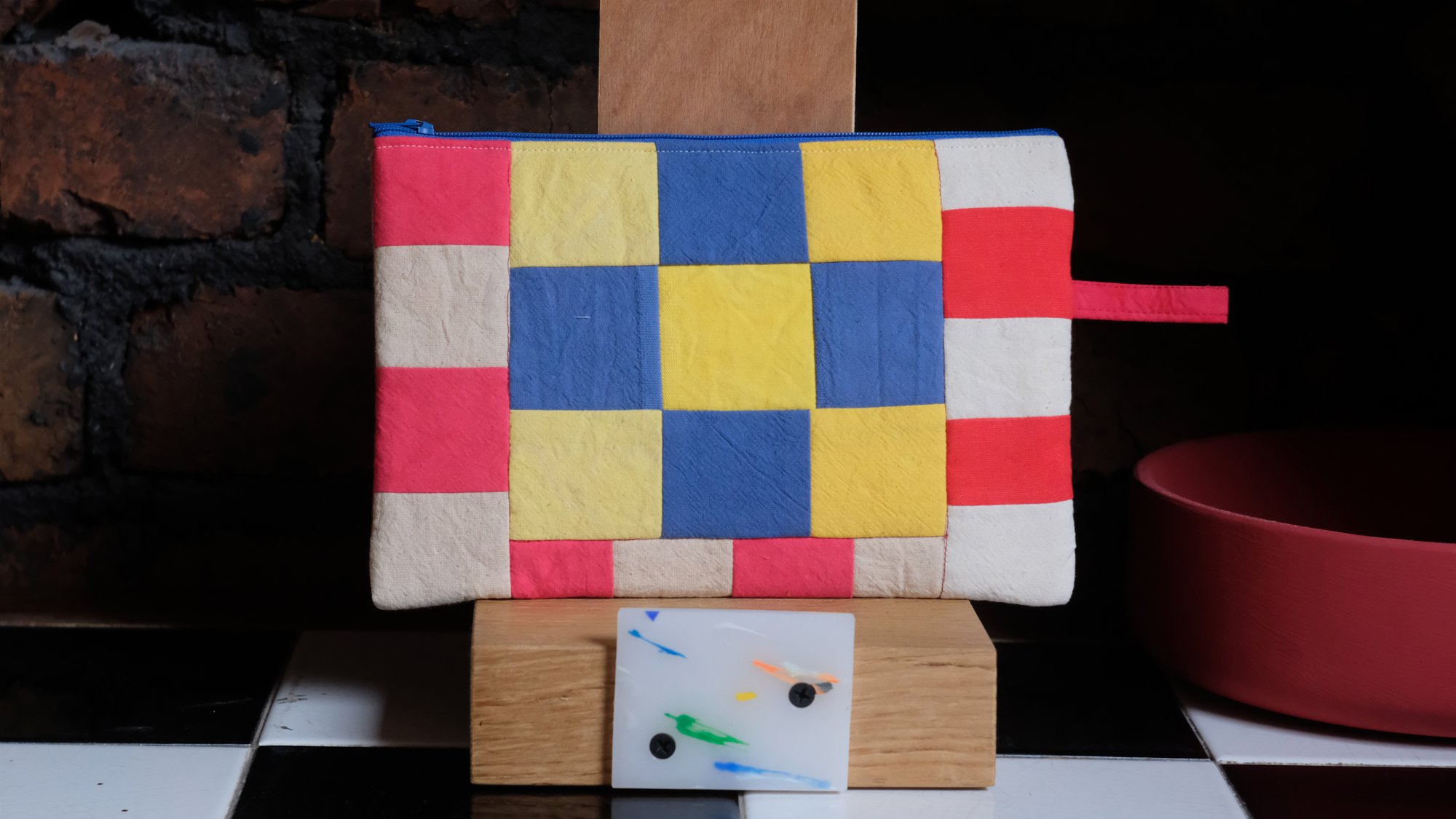 One of a kind quilted calico pouch, lined with vintage red stripe fabric & nylon zipper. Inspired by medieval chequy
