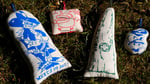 Hand printed on calico with colour matched backings & tabs. Stuffed with reclaimed wadding & soil association approved lavender